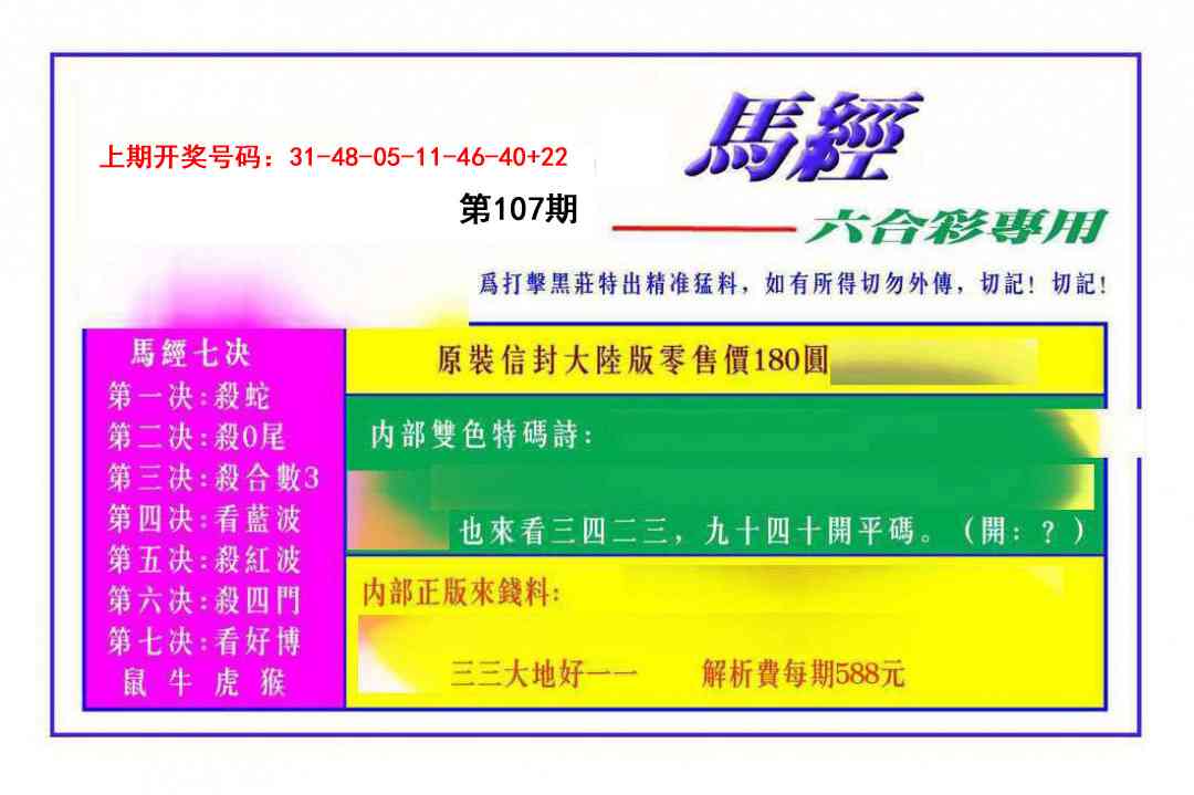 107期:澳门六合彩『澳门马经图』